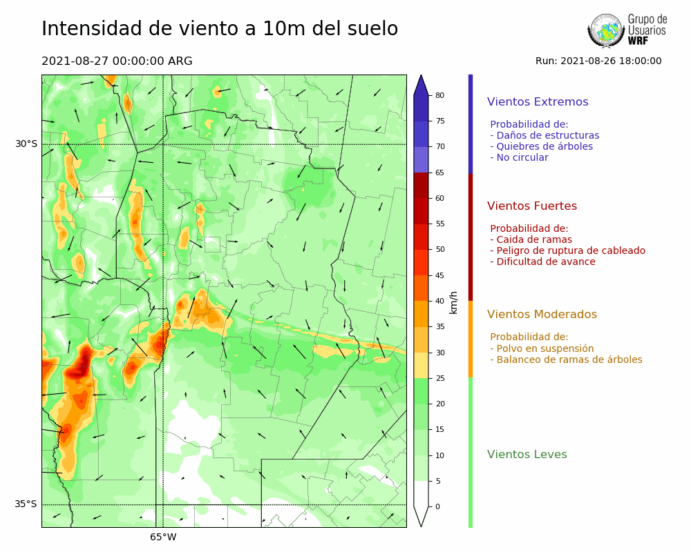 • Intensidad máxima: 26.30 km/h (27/08/2021 17hs.)