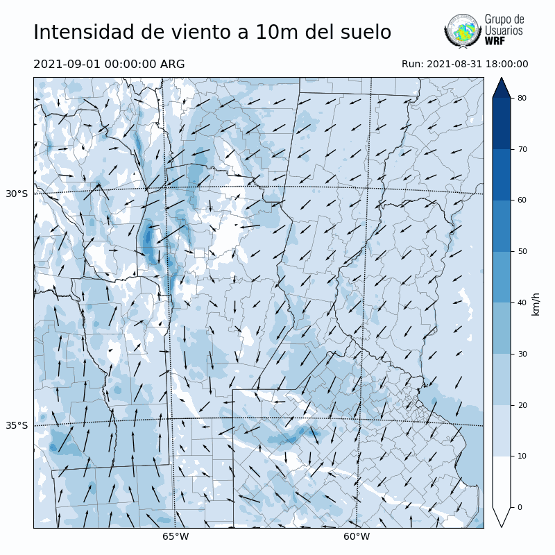 • Intensidad máxima: 7.43 km/h (01/09/2021 07hs.)