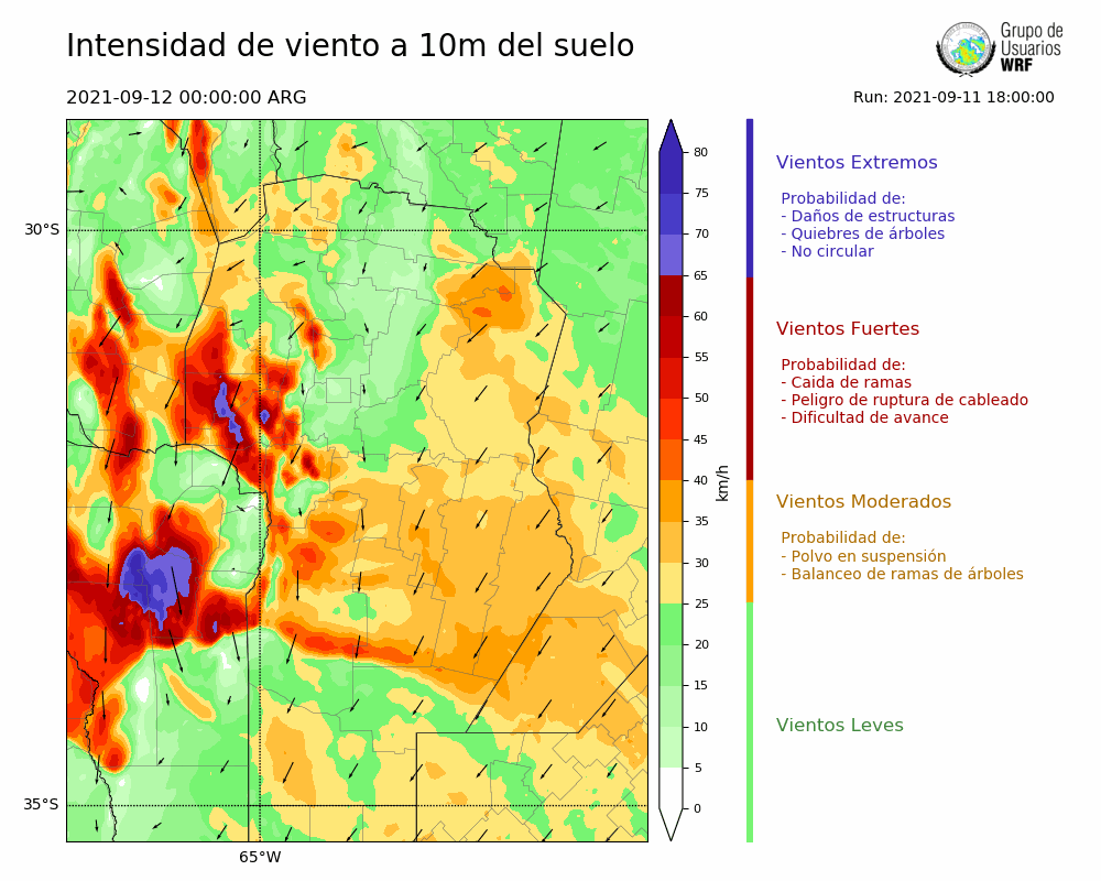 • Intensidad máxima: 65.19 km/h (12/09/2021 05hs.)