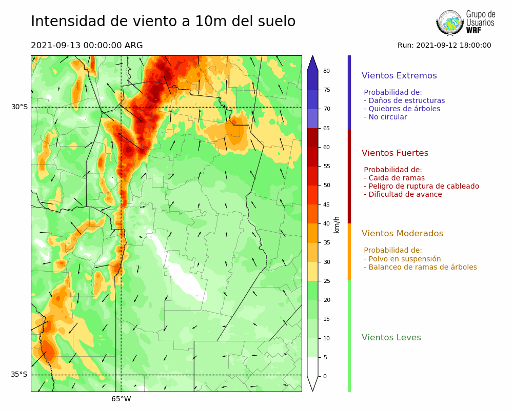 • Intensidad máxima: 8.85 km/h (13/09/2021 08hs.)