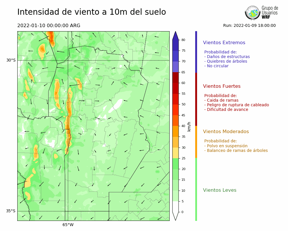• Intensidad máxima: 15.55 km/h (10/01/2022 00hs.)