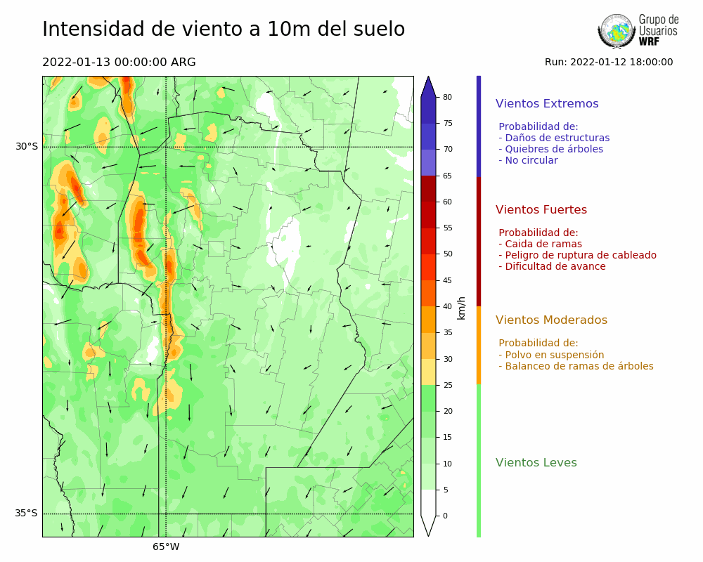 • Intensidad máxima: 32.11 km/h (13/01/2022 11hs.)