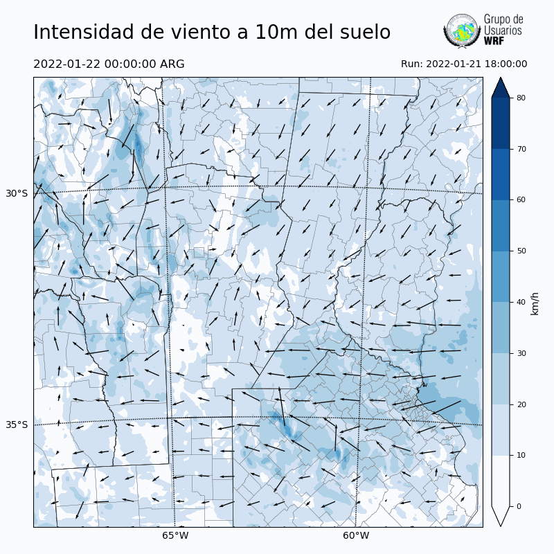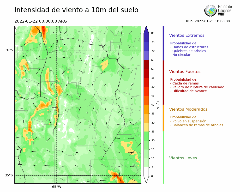 • Intensidad máxima: 32.47 km/h (22/01/2022 08hs.)