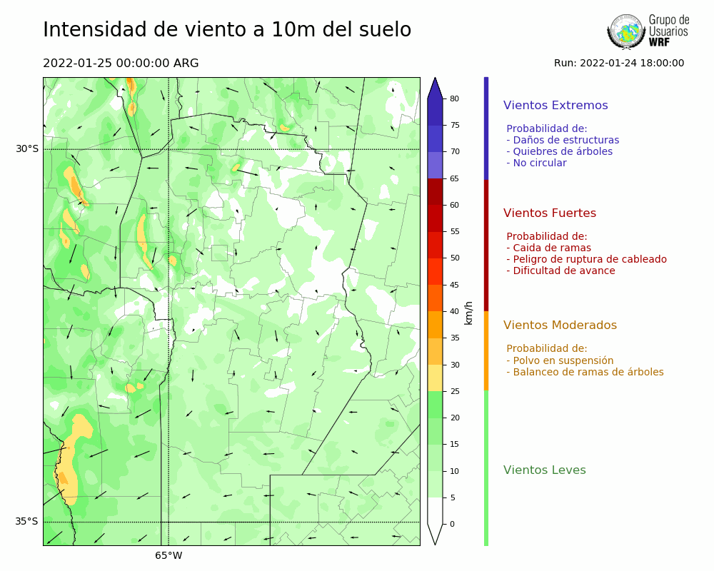 • Intensidad máxima: 6.00 km/h (25/01/2022 15hs.)