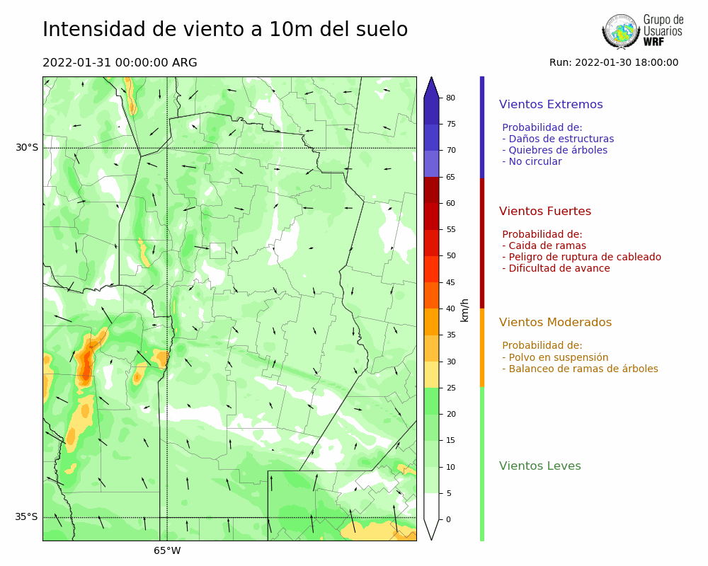 • Intensidad máxima: 26.25 km/h (31/01/2022 08hs.)