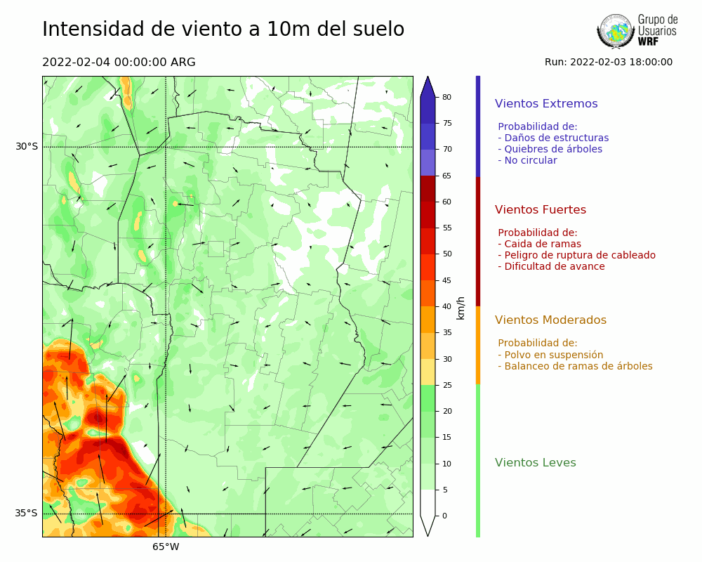 • Intensidad máxima: 35.40 km/h (04/02/2022 09hs.)