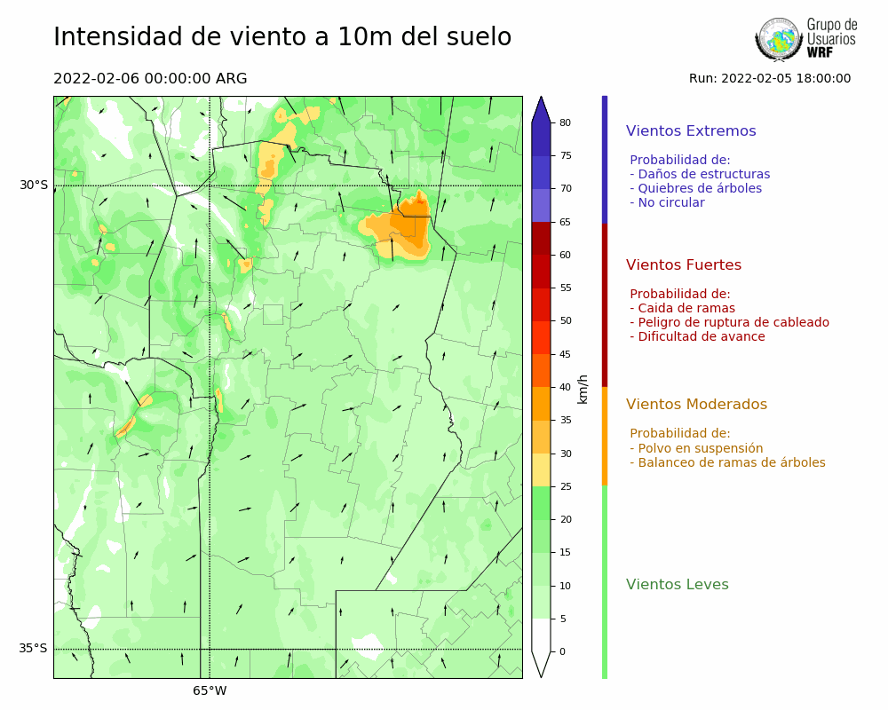 • Intensidad máxima: 14.40 km/h (06/02/2022 04hs.)