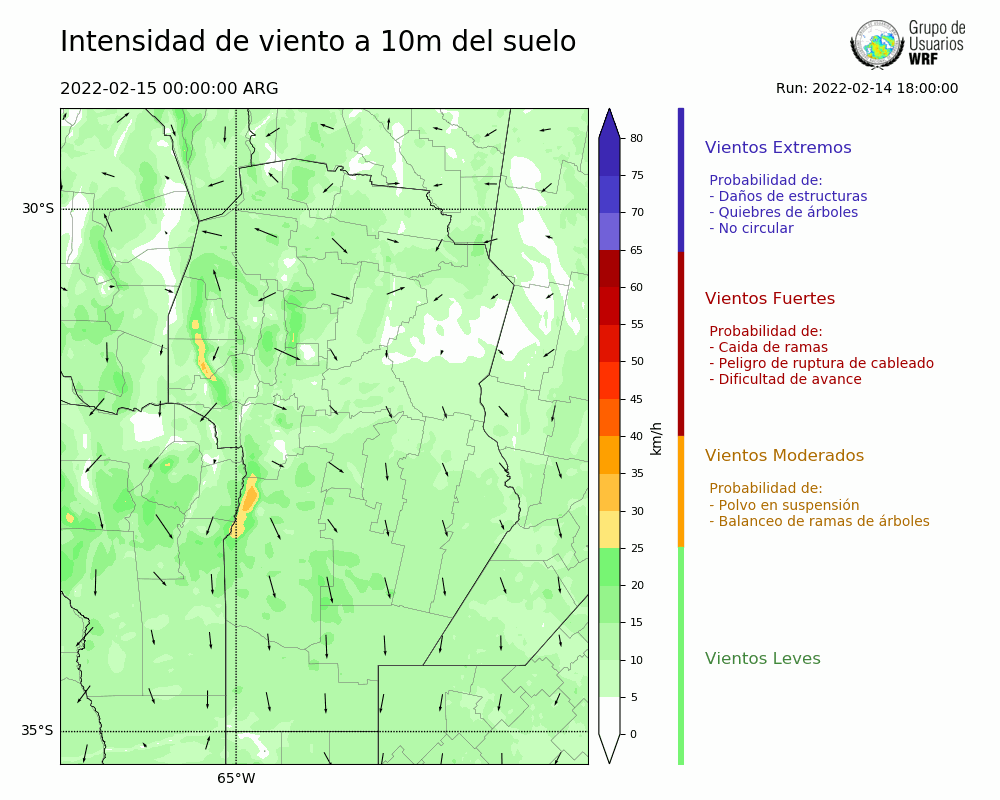 • Intensidad máxima: 25.70 km/h (15/02/2022 03hs.)