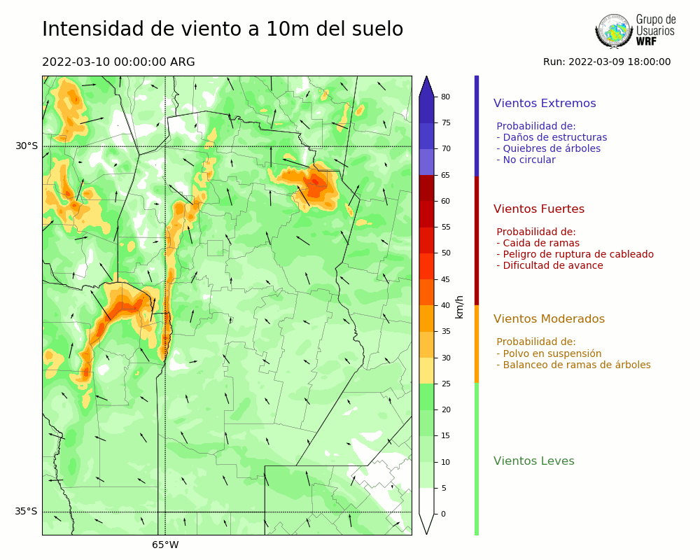 • Intensidad máxima: 14.20 km/h (12/03/2022 02hs.)