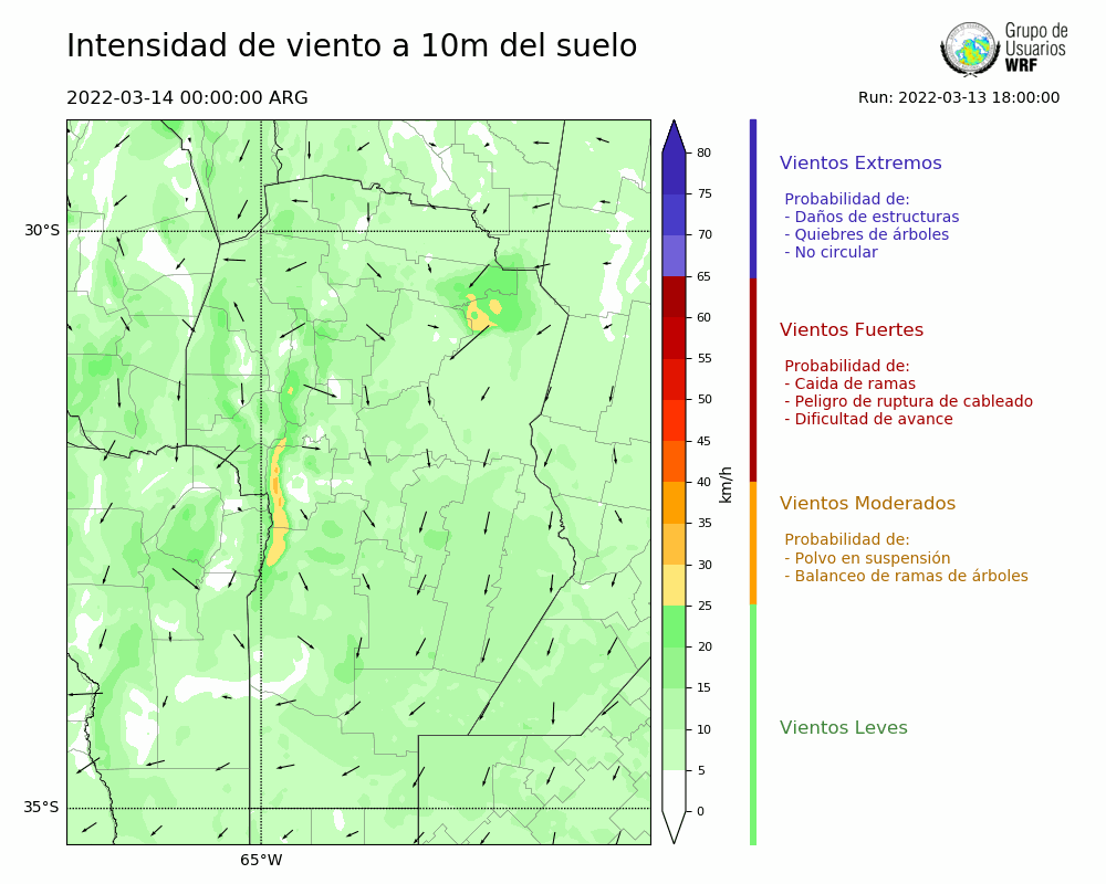 • Intensidad máxima: 8.85 km/h (14/03/2022 13hs.)