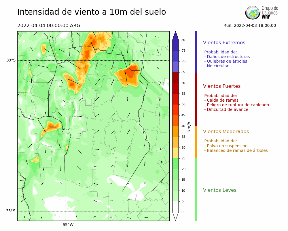 • Intensidad máxima: 16.77 km/h (05/04/2022 04hs.)