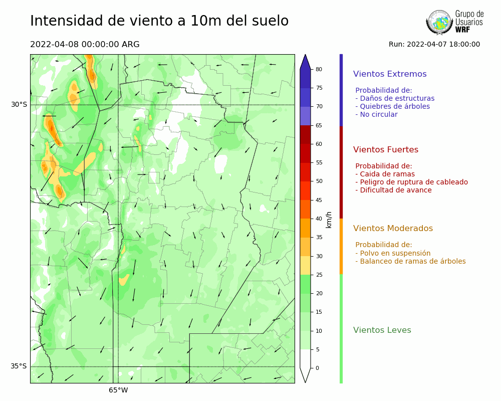 • Intensidad máxima: 17.03 km/h (08/04/2022 11hs.)