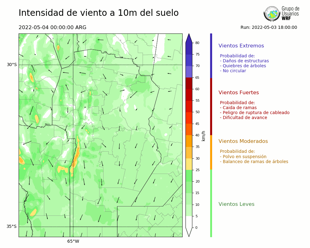 • Intensidad máxima: 30.57 km/h (04/05/2022 03hs.)