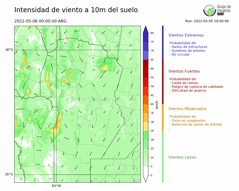 • Intensidad máxima: 8.31 km/h (06/05/2022 17hs.)