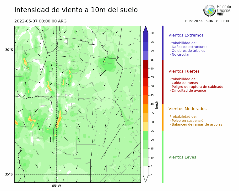 • Intensidad máxima: 14.58 km/h (08/05/2022 21hs.)