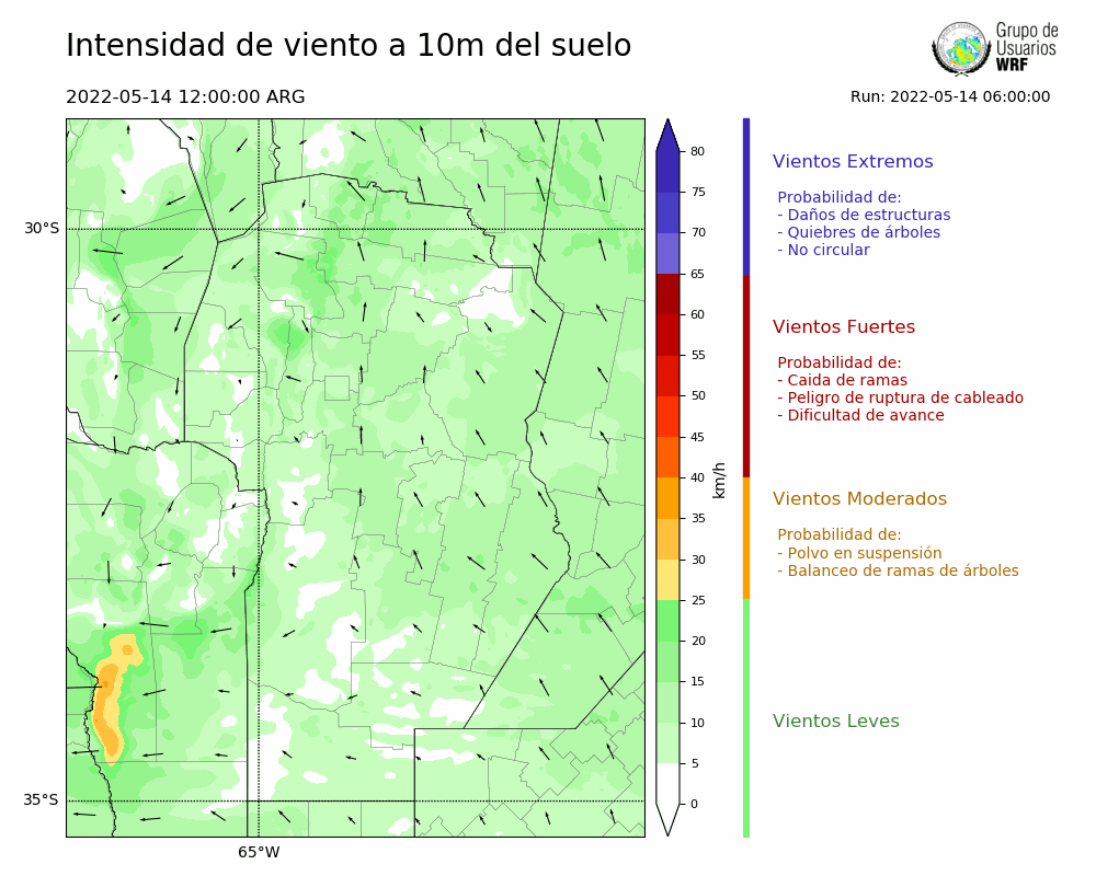 • Intensidad máxima: 10.65 km/h (14/05/2022 13hs.)