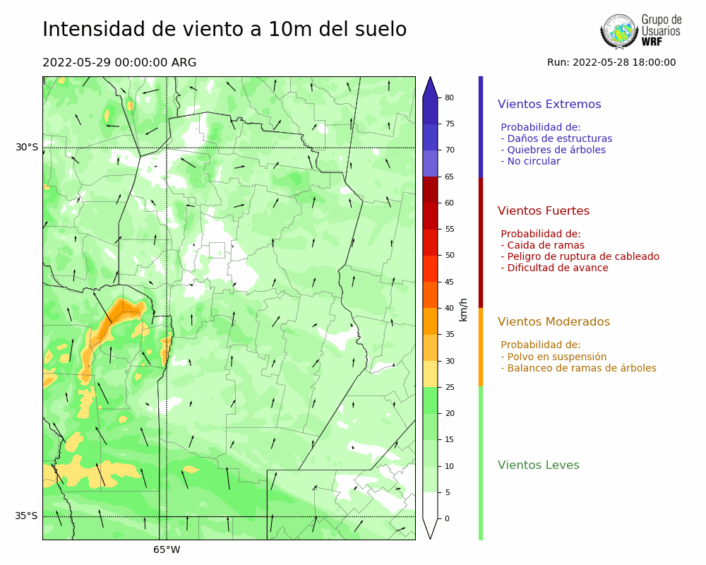 • Intensidad máxima: 12.44 km/h (31/05/2022 00hs.)