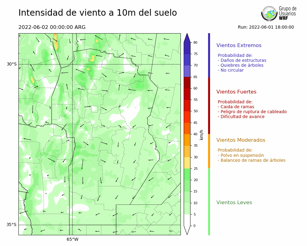• Intensidad máxima: 18.81 km/h (02/06/2022 11hs.)