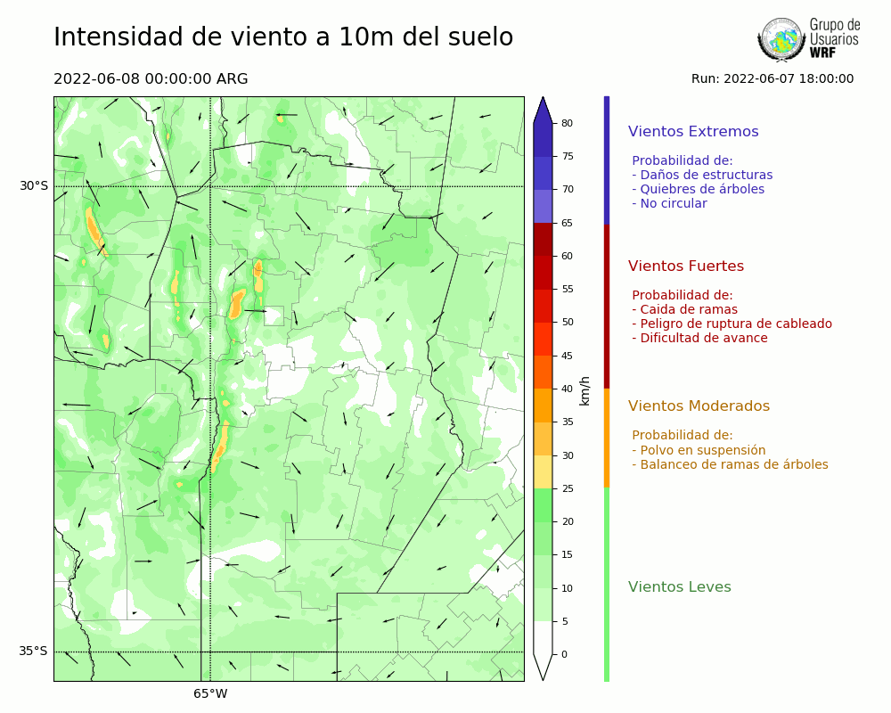 • Intensidad máxima: 30.62 km/h (08/06/2022 01hs.)