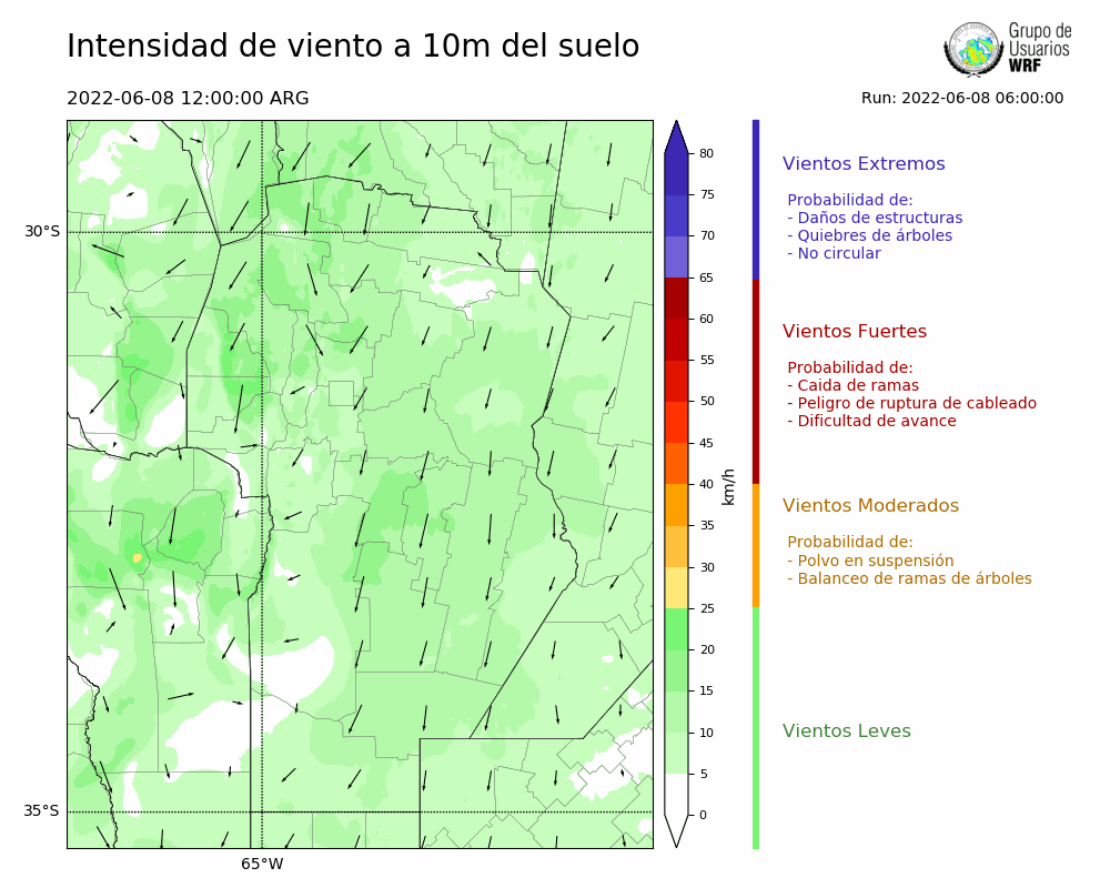 • Intensidad máxima: 17.17 km/h (08/06/2022 22hs.)