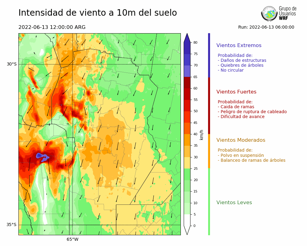 • Intensidad máxima: 38.32 km/h (13/06/2022 13hs.)