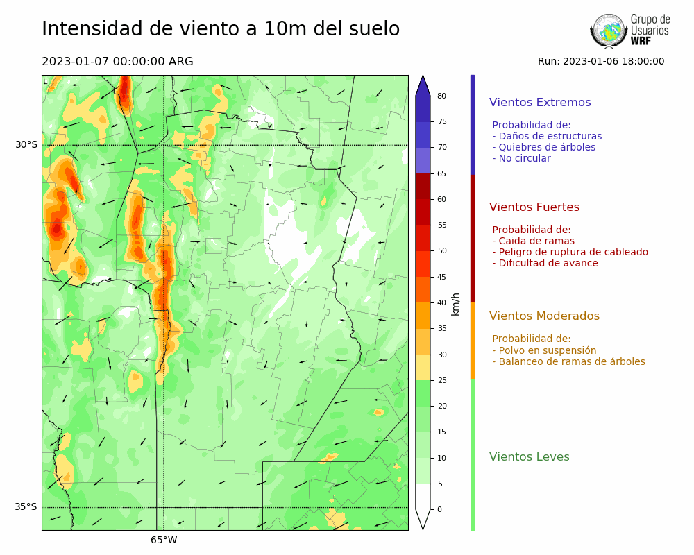 • Intensidad máxima: 30.38 km/h (07/01/2023 10hs.)