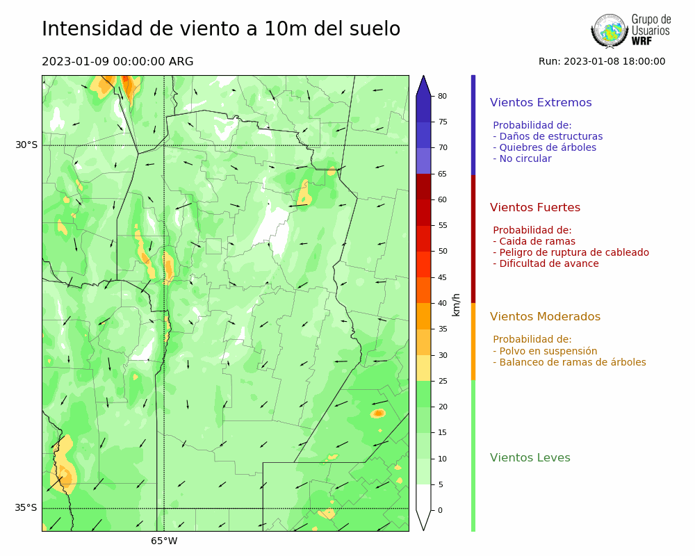 • Intensidad máxima: 20.32 km/h (09/01/2023 07hs.)
