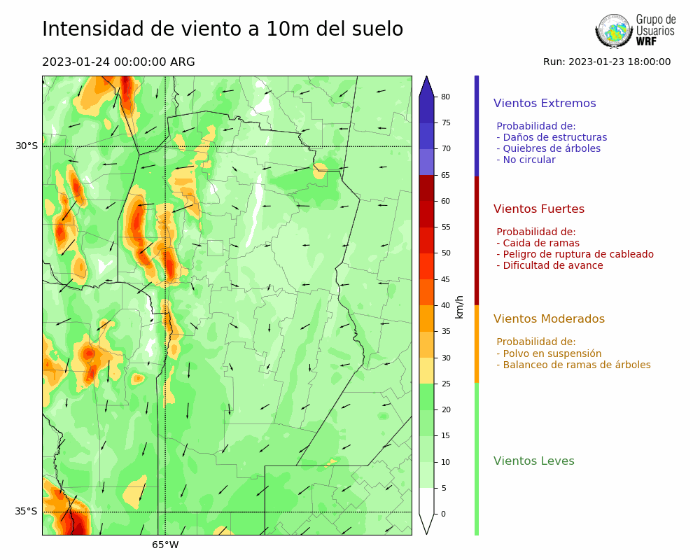 • Intensidad máxima: 25.34 km/h (24/01/2023 03hs.)