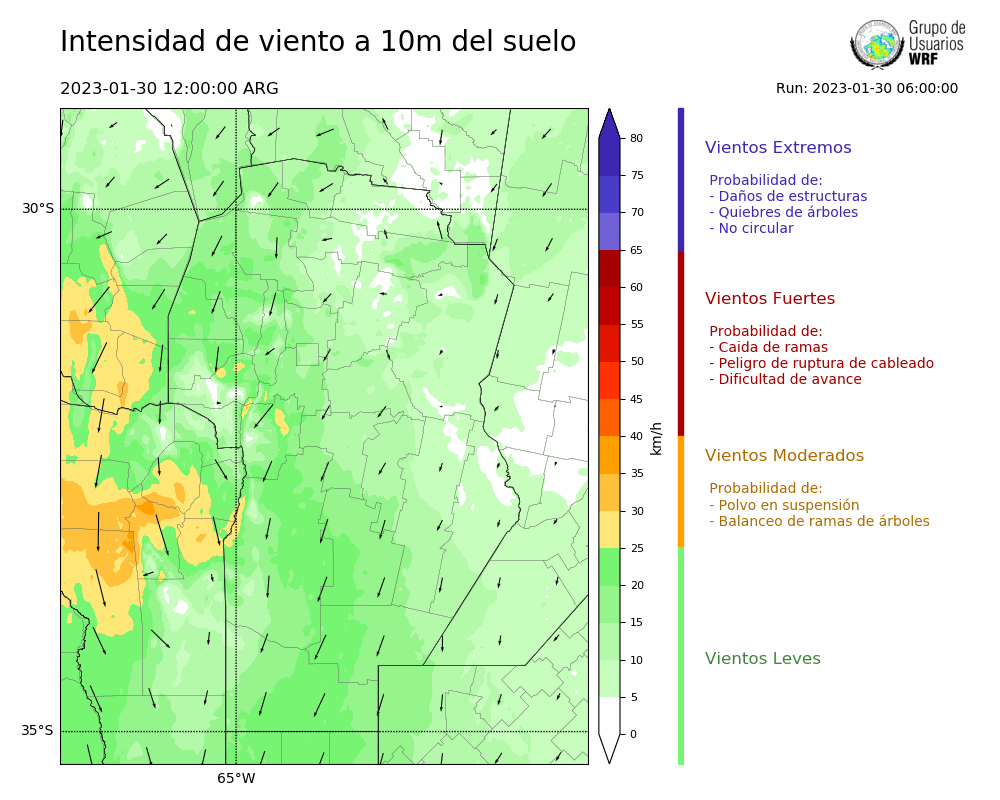 • Intensidad máxima: 19.35 km/h (30/01/2023 13hs.)