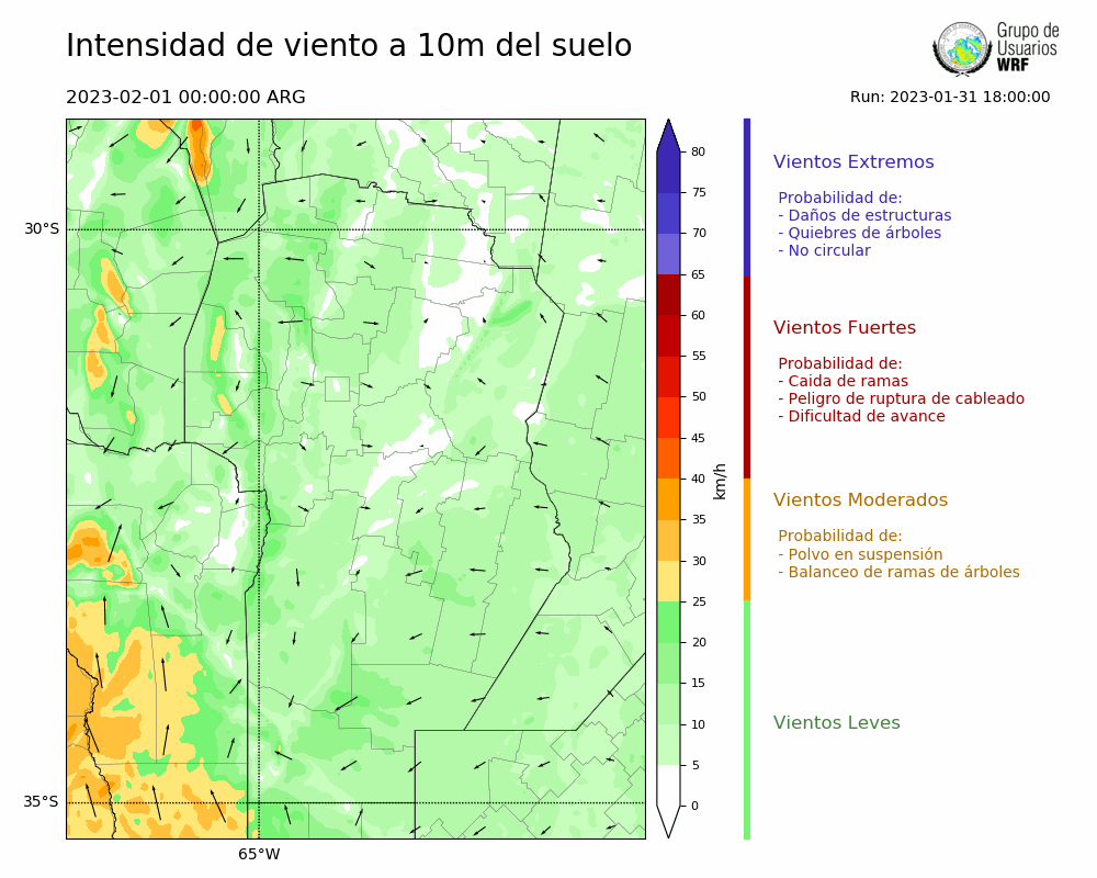 • Intensidad máxima: 6.89 km/h (01/02/2023 10hs.)