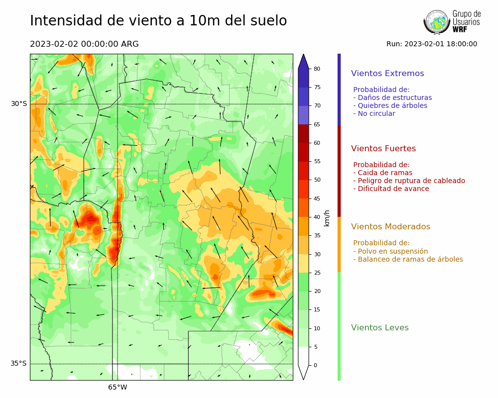 • Intensidad máxima: 27.83 km/h (02/02/2023 05hs.)