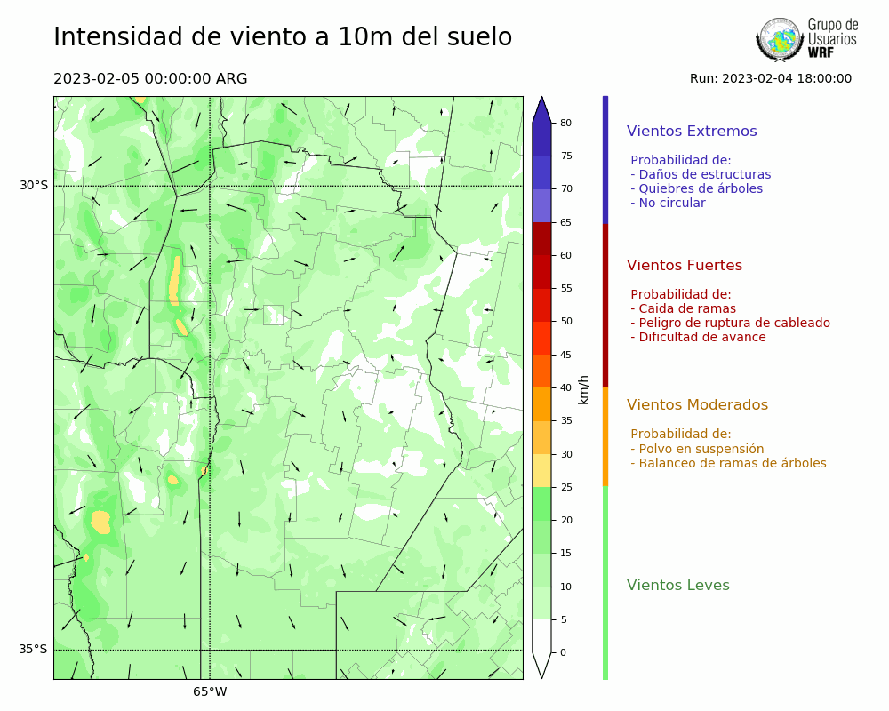 • Intensidad máxima: 14.40 km/h (05/02/2023 11hs.)