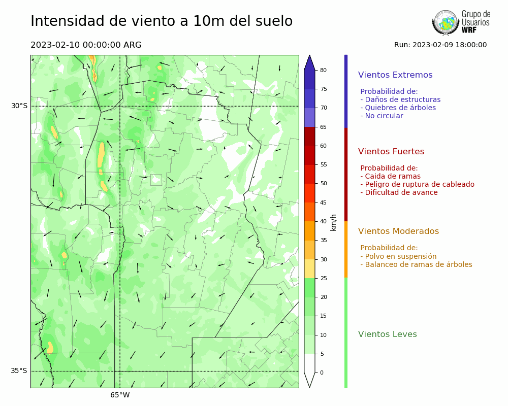 • Intensidad máxima: 9.29 km/h (10/02/2023 10hs.)