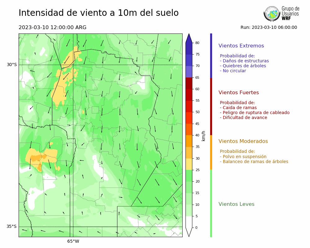 • Intensidad máxima: 25.89 km/h (10/03/2023 16hs.)