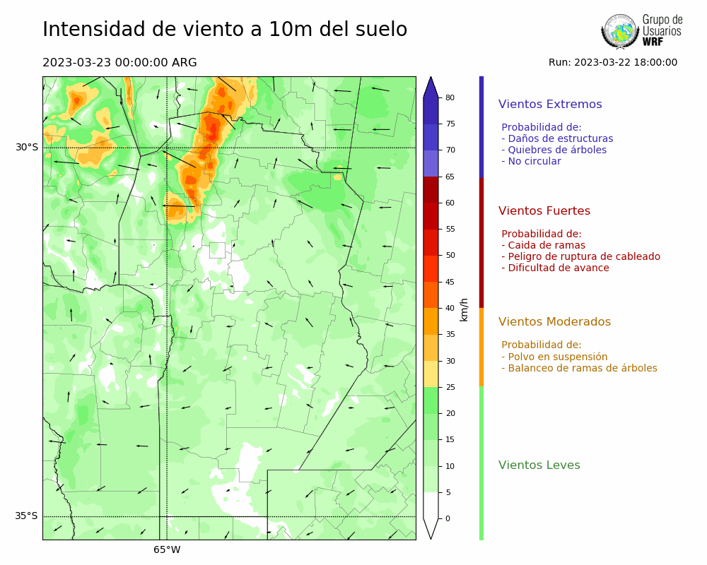 • Intensidad máxima: 8.79 km/h (23/03/2023 06hs.)