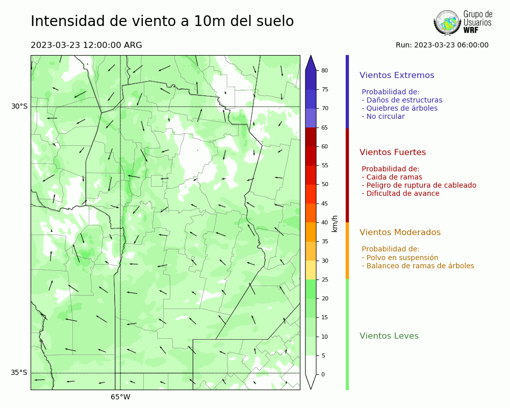 • Intensidad máxima: 5.34 km/h (24/03/2023 05hs.)