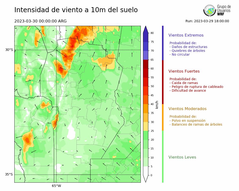 • Intensidad máxima: 14.05 km/h (30/03/2023 00hs.)
