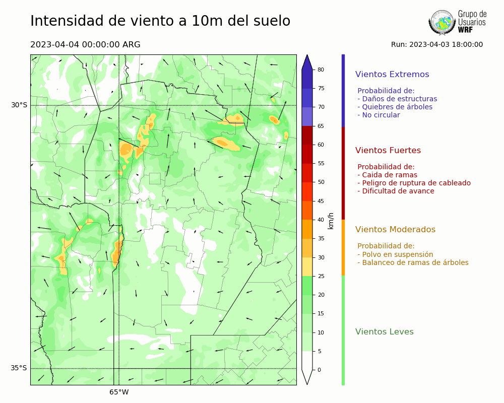• Intensidad máxima: 5.07 km/h (05/04/2023 06hs.)