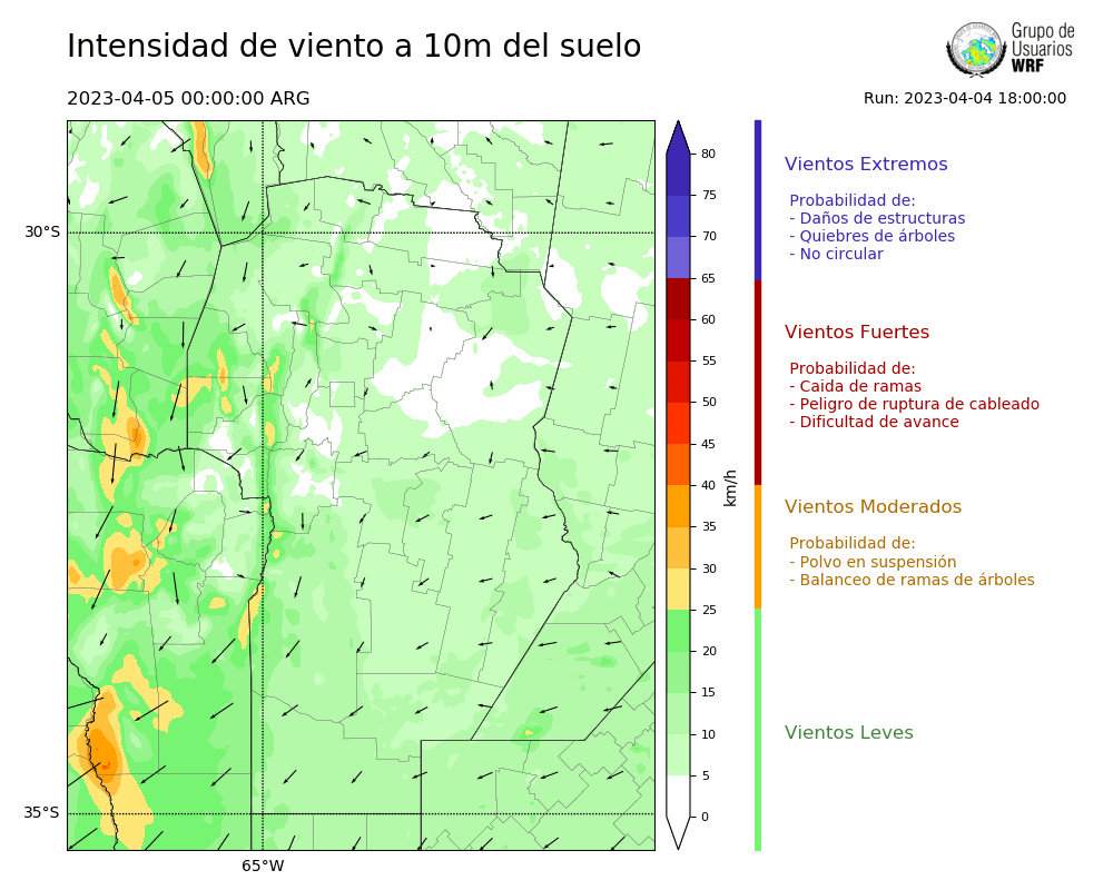 • Intensidad máxima: 20.08 km/h (06/04/2023 11hs.)