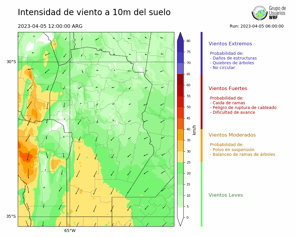 • Intensidad máxima: 13.25 km/h (06/04/2023 04hs.)