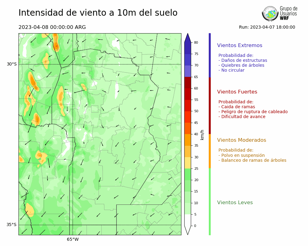 • Intensidad máxima: 8.05 km/h (09/04/2023 04hs.)