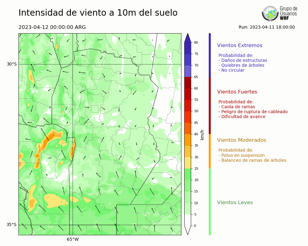 • Intensidad máxima: 15.15 km/h (12/04/2023 05hs.)
