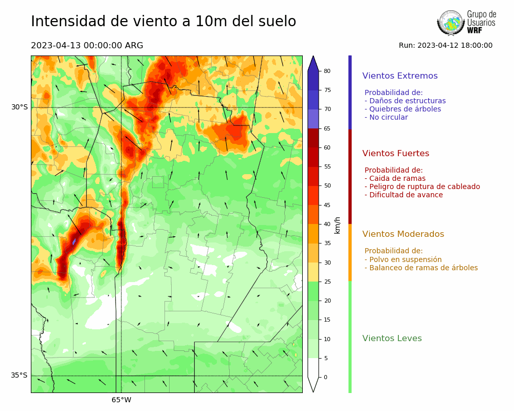 • Intensidad máxima: 4.69 km/h (15/04/2023 05hs.)