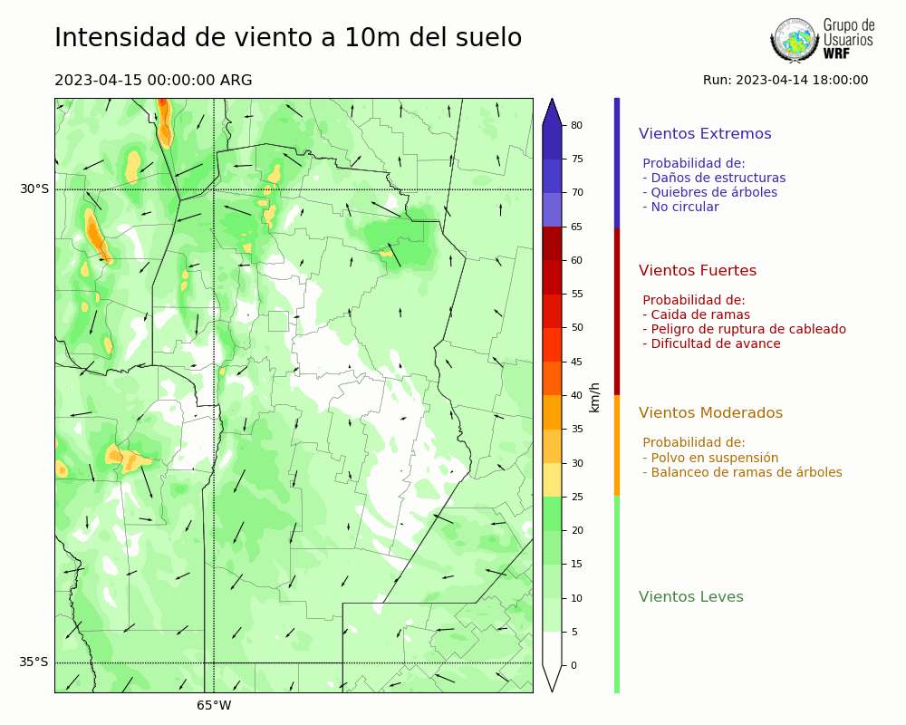 • Intensidad máxima: 4.90 km/h (16/04/2023 09hs.)
