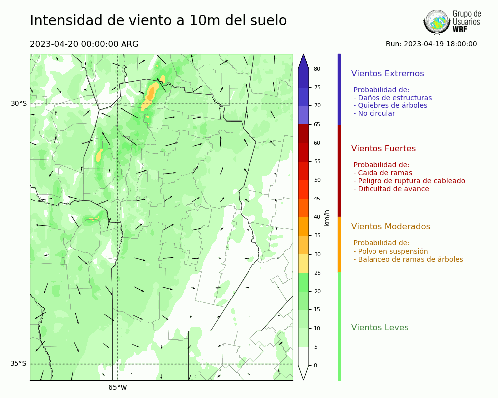 • Intensidad máxima: 19.28 km/h (20/04/2023 11hs.)