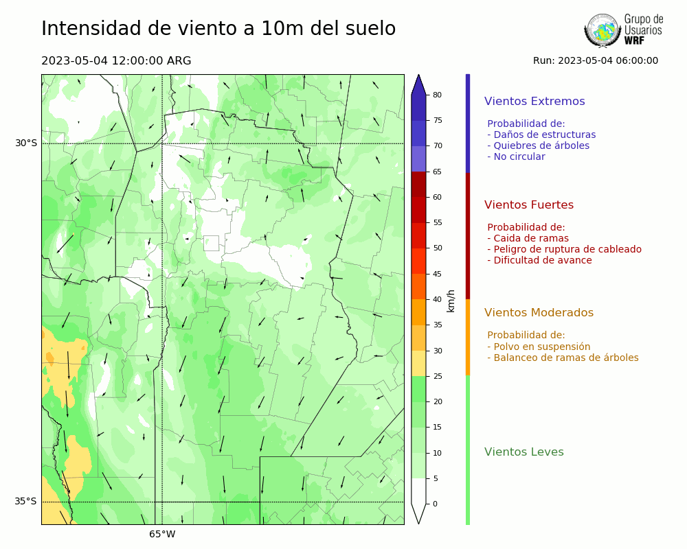 • Intensidad máxima: 15.03 km/h (06/05/2023 17hs.)
