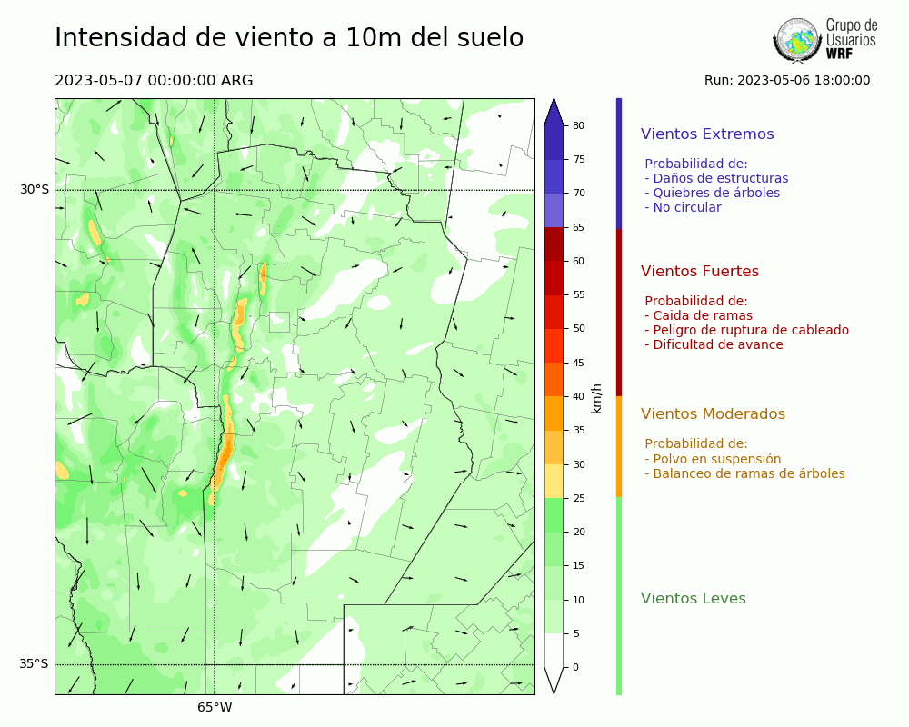 • Intensidad máxima: 7.34 km/h (07/05/2023 02hs.)