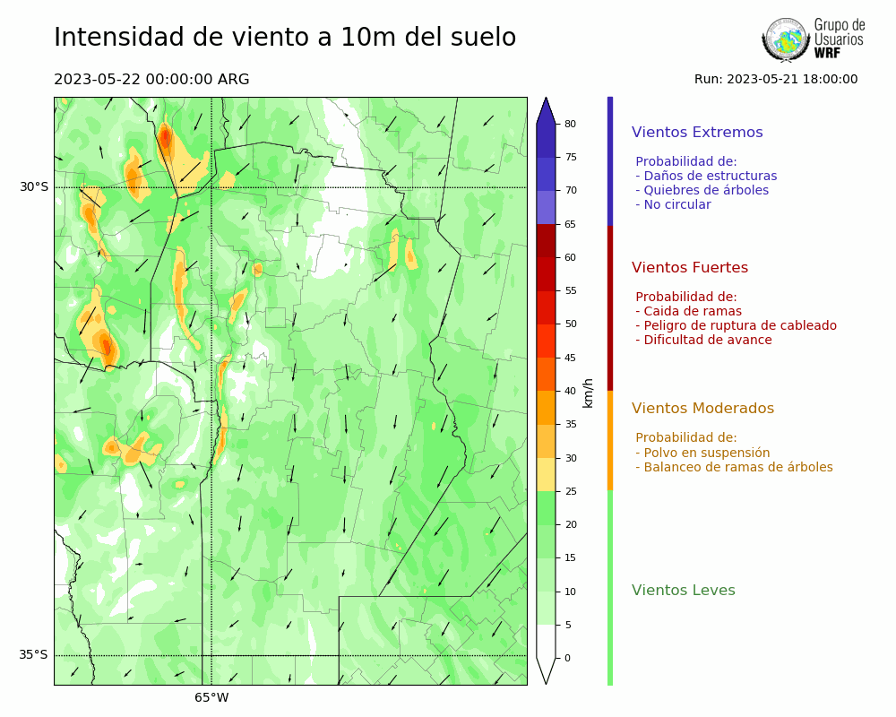 • Intensidad máxima: 13.80 km/h (22/05/2023 09hs.)