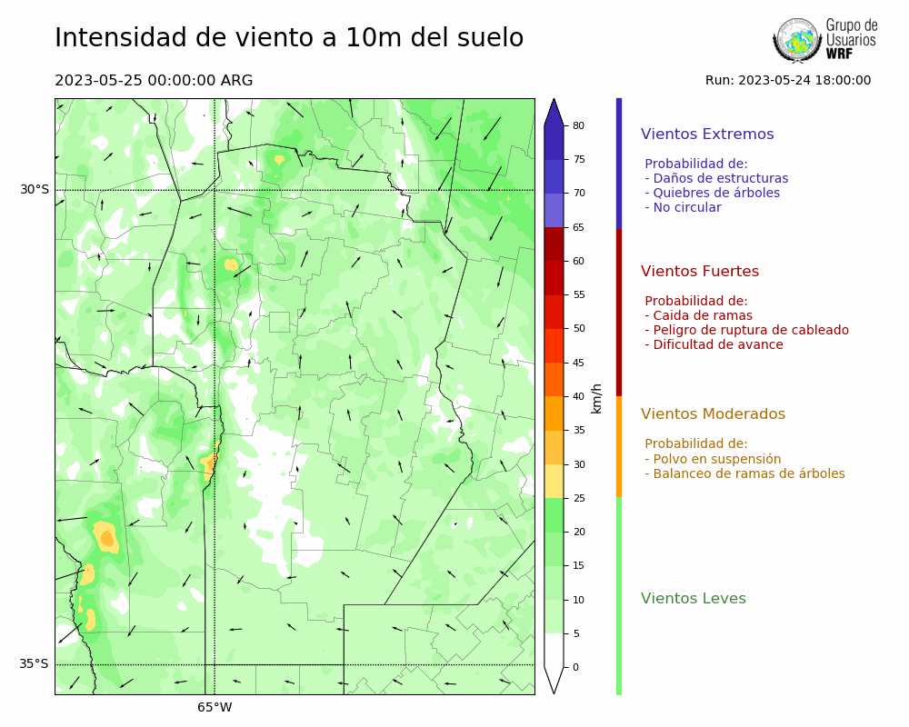 • Intensidad máxima: 9.85 km/h (25/05/2023 00hs.)