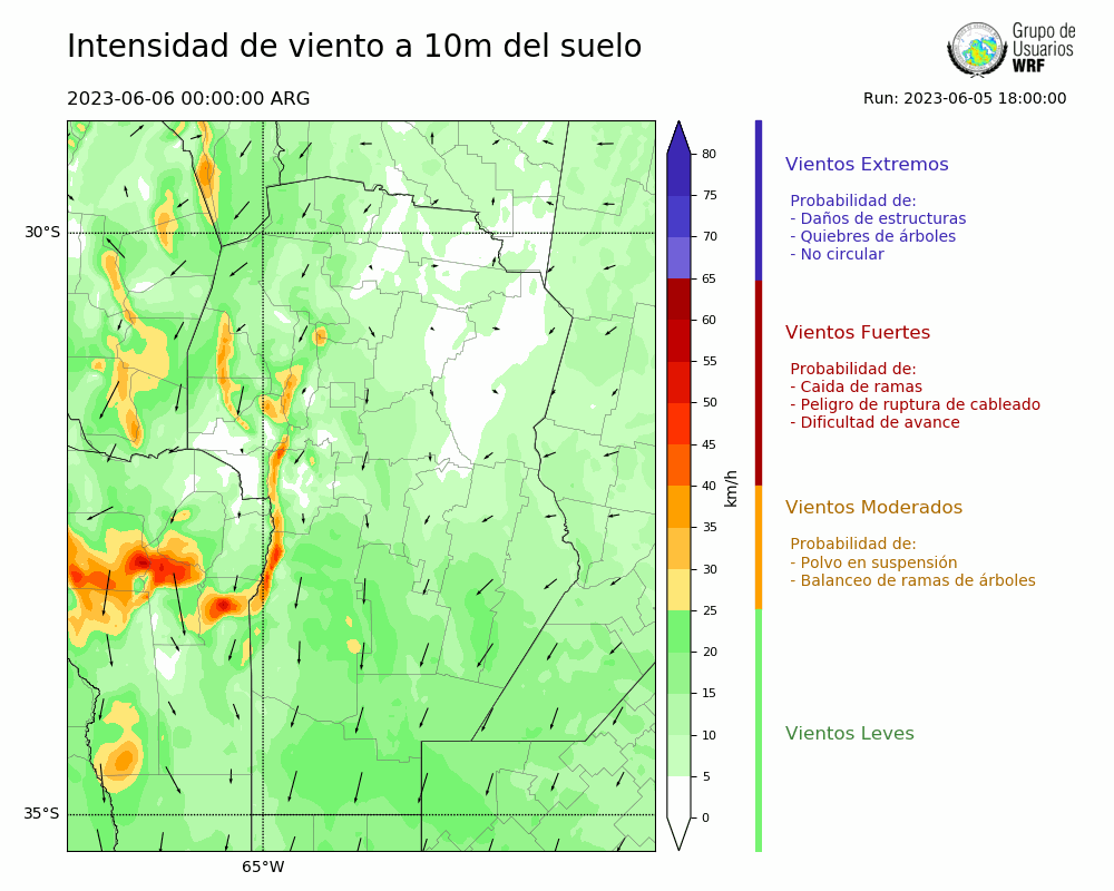 • Intensidad máxima: 4.42 km/h (08/06/2023 01hs.)